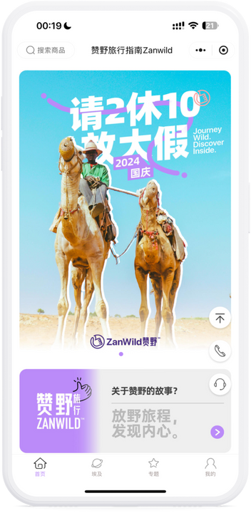 赞野旅行希望通过我们的努力,成为华人旅行者心 中的首选冒险和文化体验平台。我们不只是带你去 看风景,而是带你去体验、去感受、去发现。无论你是 户外探险爱好者,还是文化体验的追求者,赞野旅行 都会为你提供最独特和难忘的旅行体验。让我们一 起,走出家门,探索世界,发现生命中的精彩。